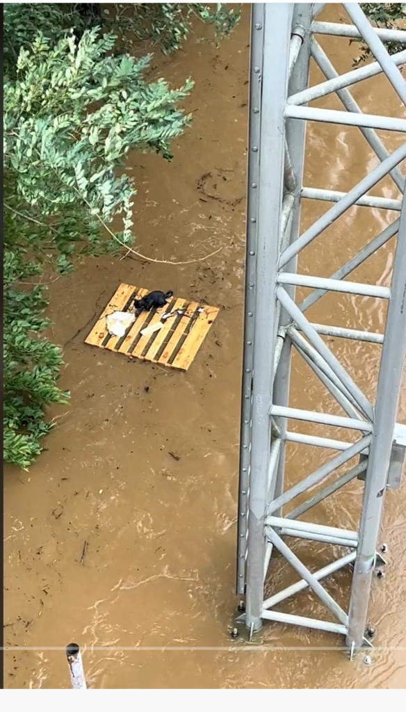 This is Amy, below, our affiliate and friend from True Rescue in Tennessee. “I’m heading into my second week here, and am exhausted, but the need is so great to continue helping in Madison County, where True Rescue was asked to stay. We were asked to help with animal transport initially, and it has turned into something much bigger. Emergency sheltering is my wheelhouse and skillset, so even though I’m in my mid-fifties, every day telling myself “I’m too old for this shit”, here I am. Thank you to everyone who has given in any way possible to this cause. This one has hit all of us hard.”