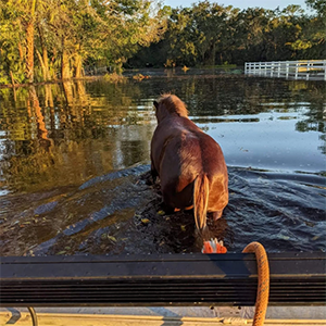 “We managed to get a trailer load of feed, medical supplies, and fencing to pass out to those in need in Venice! Some even had to be delivered by boat!”